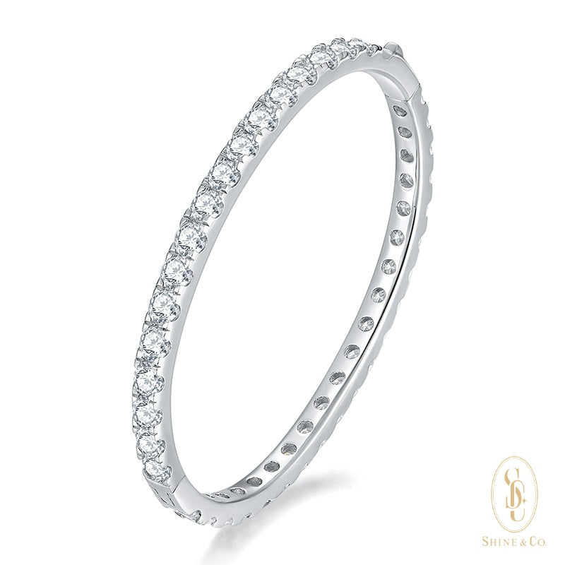 [PRE-ORDER] Shine & Co. 4mm Full Luxe Moissanite Bangle – A timeless statement piece, this 4mm bangle is fully encrusted with brilliant moissanite diamonds, creating a continuous sparkle around the wrist. Crafted in 925 sterling silver, it combines luxury with everyday elegance.