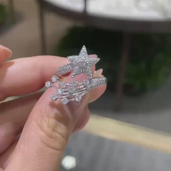 [PRE-ORDER] Shine & Co. Meteor Trail Ring – Inspired by the brilliance of a meteor streaking across the sky, this ring features a full pavé of sparkling moissanite diamonds along a gracefully curved 925 sterling silver band. Each stone catches the light, creating a dazzling trail that wraps elegantly around the finger, making it a statement piece that embodies celestial glamour.